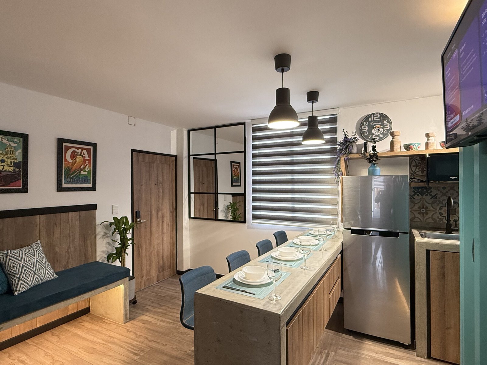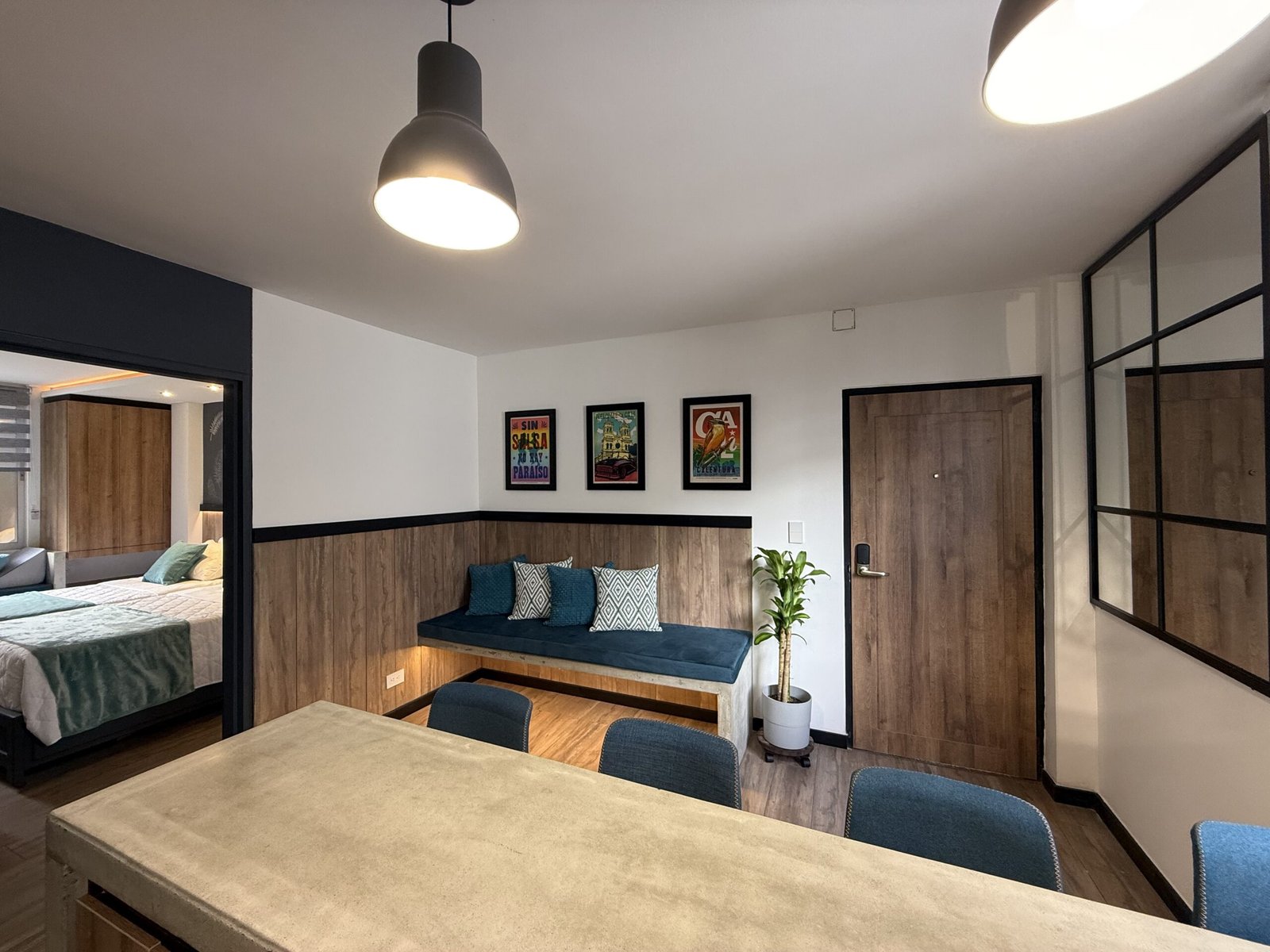 Su diseño industrial moderno aporta carácter al espacio sin sacrificar funcionalidad, y lo convierte en una alternativa atractiva para estancias urbanas en una de las zonas mejor ubicadas de la ciudad.